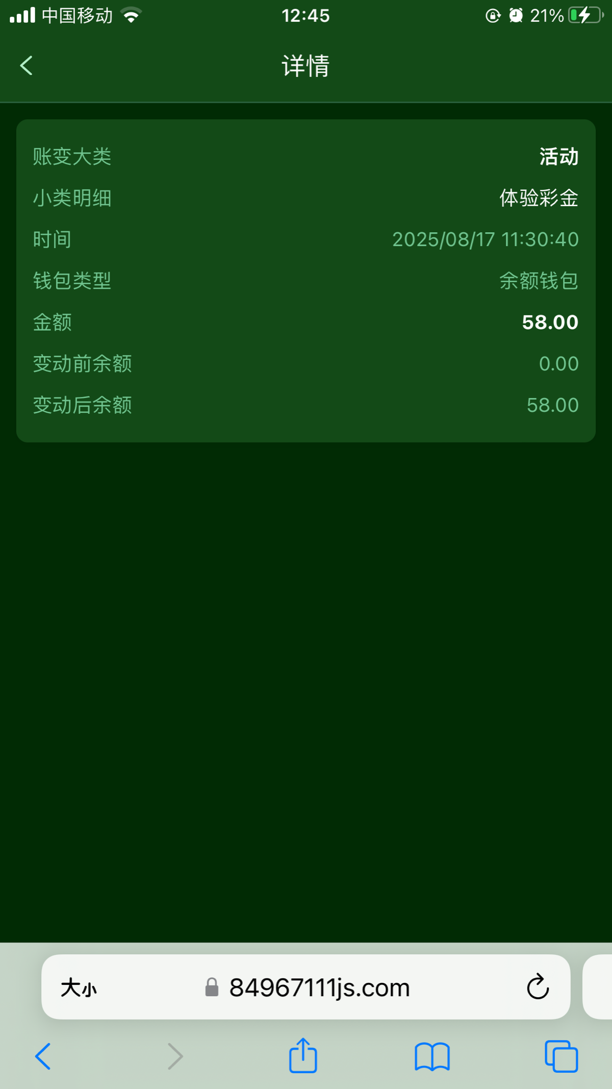 第一次接触这个东西那个时候还在上中专2年级,我们这边中专在县城里面是在外面租的房子,我同学当时是告诉我说注册有钱拿送38块钱我就去注册了,就是天庭娱乐,注册真给了我38块钱当时也不接触棋牌电子这些也还不知道这些东西,我朋友就教我炸金花天庭娱乐炸金花第一把就能看牌我打的非常稳每次都看牌,牌打继续压牌小就弃牌,38块钱让我打到了100块钱提现也到账了,当时我一周生活费也就200块钱,我直接就是下去小卖部里面买了三包烟,当时就是特别高兴,回来之后继续炸把剩余的40块钱充进去继续炸然后就输了,后面我一直玩的都是炸金花充几十块钱一般都是赢100块钱就提现不知不觉就上瘾了,天天在宿舍里面炸金花我现在清楚的记着有一次是充了30块钱一晚上赢了100块钱打了1000多流水,慢慢着天庭娱乐被我打到了v3,后面我同学班上的朋友玩的电子最开始是麻将胡了2和赏金船长当时就是4毛俩毛拉当时也不怎么打电子有一次。