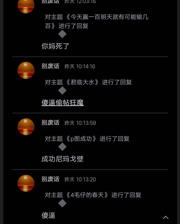 死孤儿,毫无底线什么鸡巴帖子都搬,我要是小斌知道你偷我帖子,直接搞把刀捅死你,什么玩意儿,这种叙事帖子也偷,是你经历的嘛,就搬