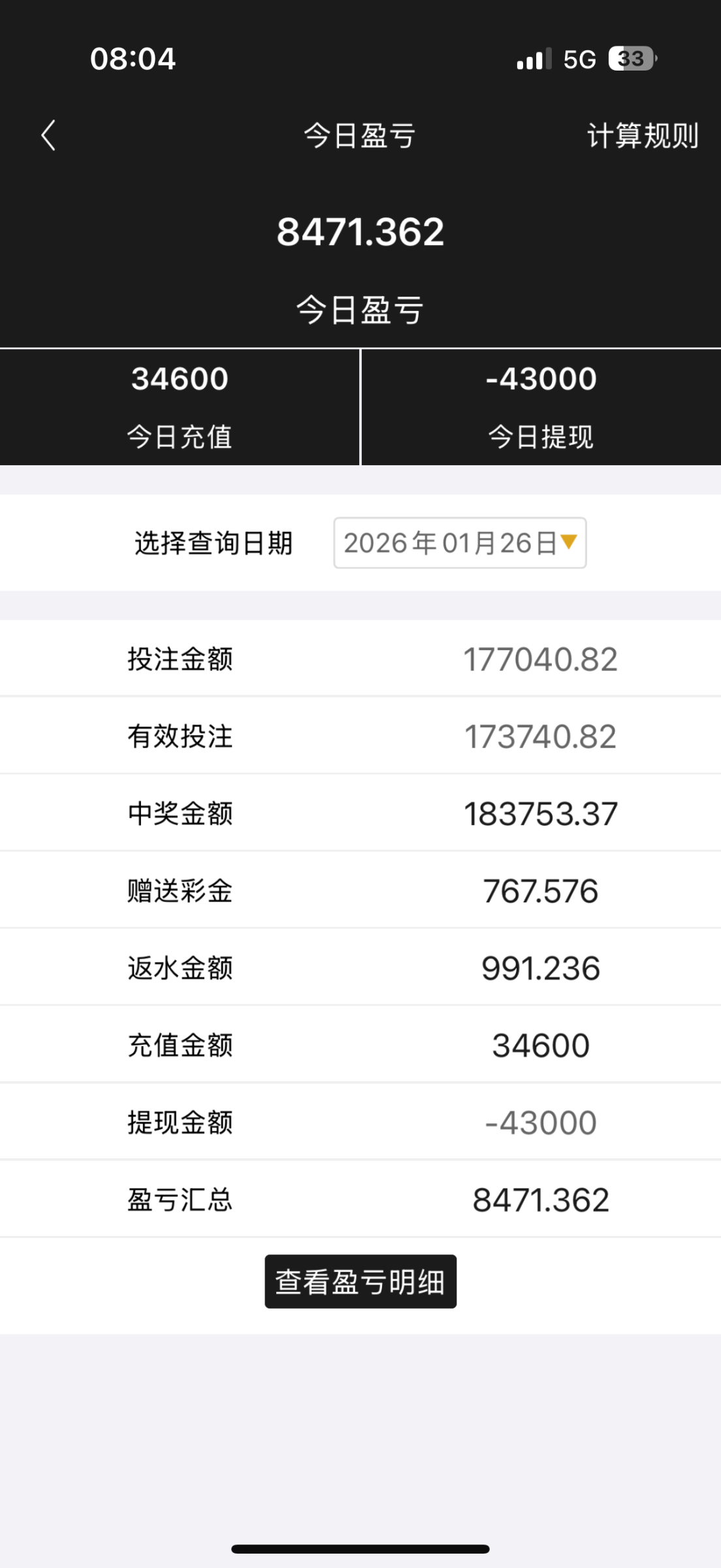 下了俩个之后又想玩,又充了2.7w进去,输的还有最后800又打上去2w,今天又少赚7k,可惜了