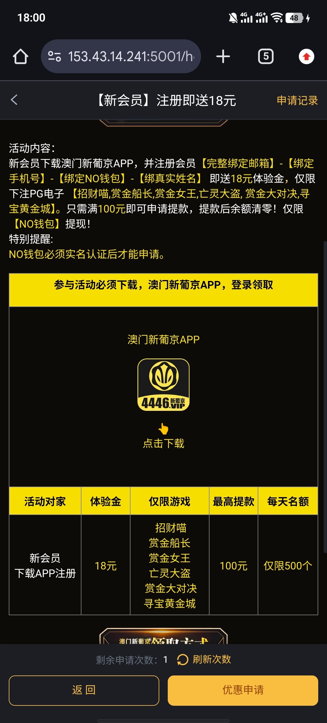 100+18+18+38ab钱包存款申请先下载app再注册 我打完还是提款100看见有100+100 10水最低两千提款 就想着试一下 流水打够了我就直接提款了没想到 到账了 没事可以试一下不保证都可以到282.com