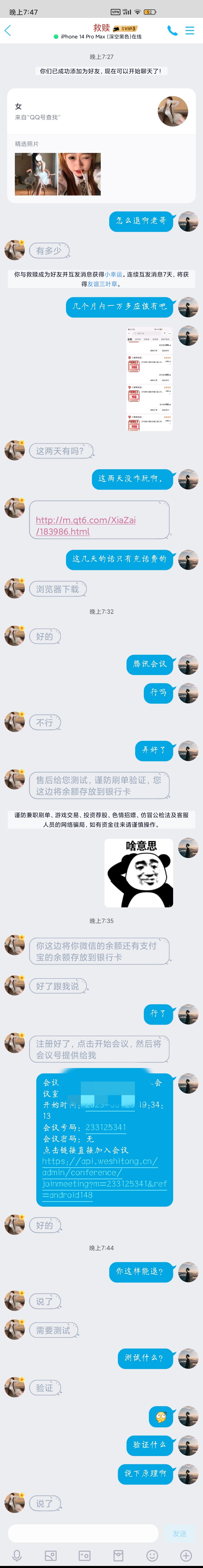 看了你的帖子我去加了个人,他妈的又没说怎么退,就看微信账单,支付宝账单,口令红包记录,说售后测试什么的,听他口音有点像缅甸佬