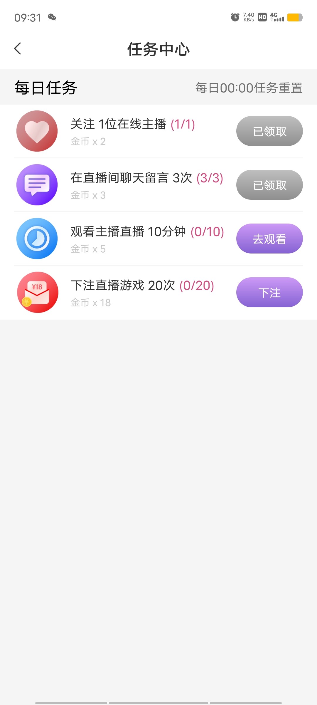 自己去我的里面任务中心领取