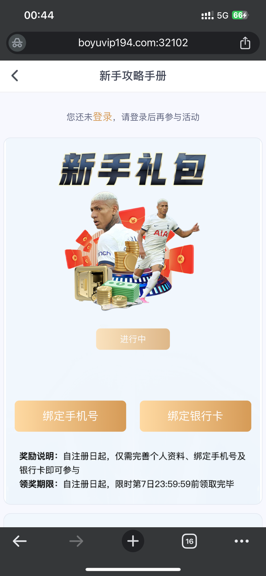 新用户注册绑卡 优惠里面自助领取10元彩金 无游戏限制 最低最高提款100元