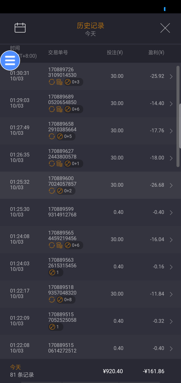 看你们拉我都懒得拉,就想直接买或者拉几下再买,25号发工资的时候还好2快拉了个1000倍也是一直买免费才给出的,这几天一点水没有,进去钱就必没,开始还想赢个几千块,后面是心里默念回本啊,退出这个圈子了,不赌我现在都买车买一点的手机了,而不是用这个oppoa5