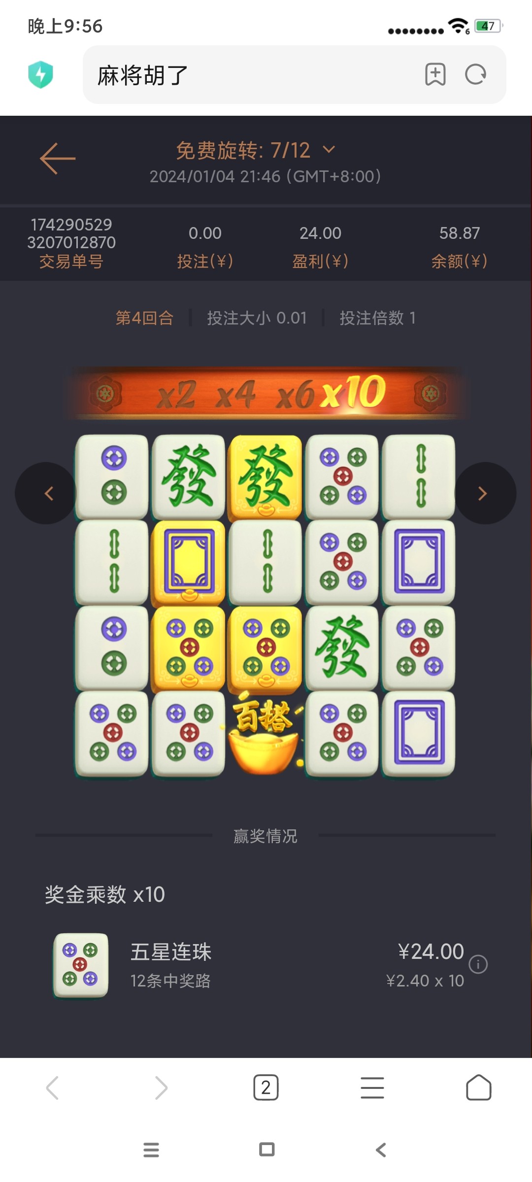 想起之前打过以小博大 然后想上去看看有没有彩金送 结果真有五块钱 结果真给我打出来了 结果真黑我了 好好好