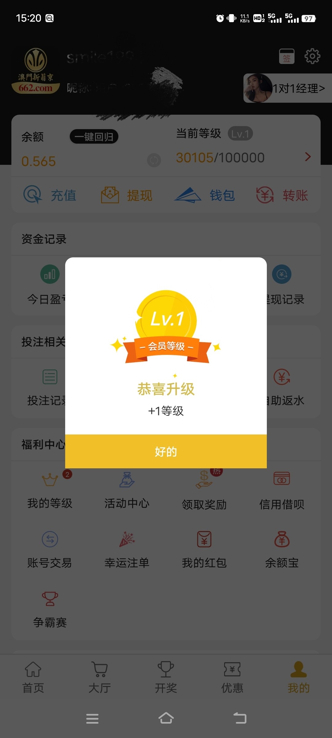 看看哥怎么玩的,薅它羊毛。几块十块的充,加起来赢了差不多它一个。还晋级v1了