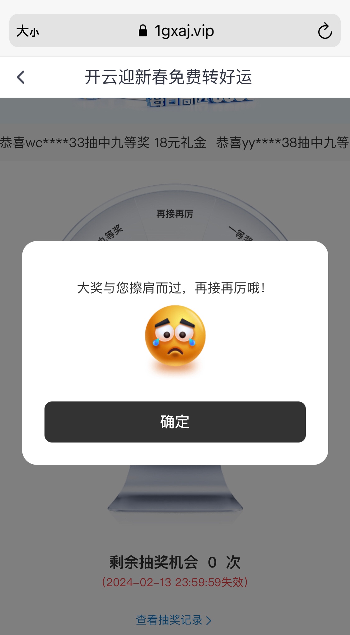 开云有抽奖活动,没充值也有1次机会