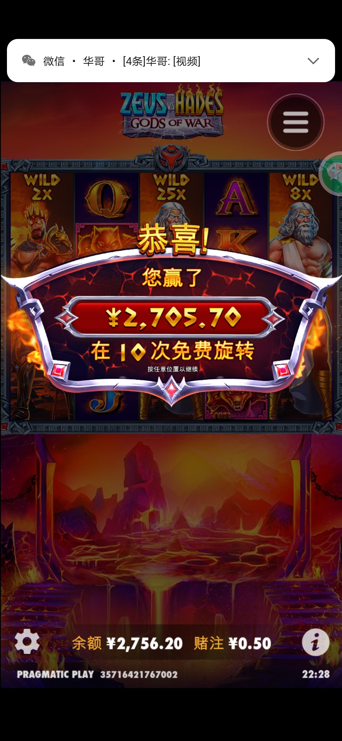 看交流区都是哈迪斯爆奖,53返水进去居然爆了。