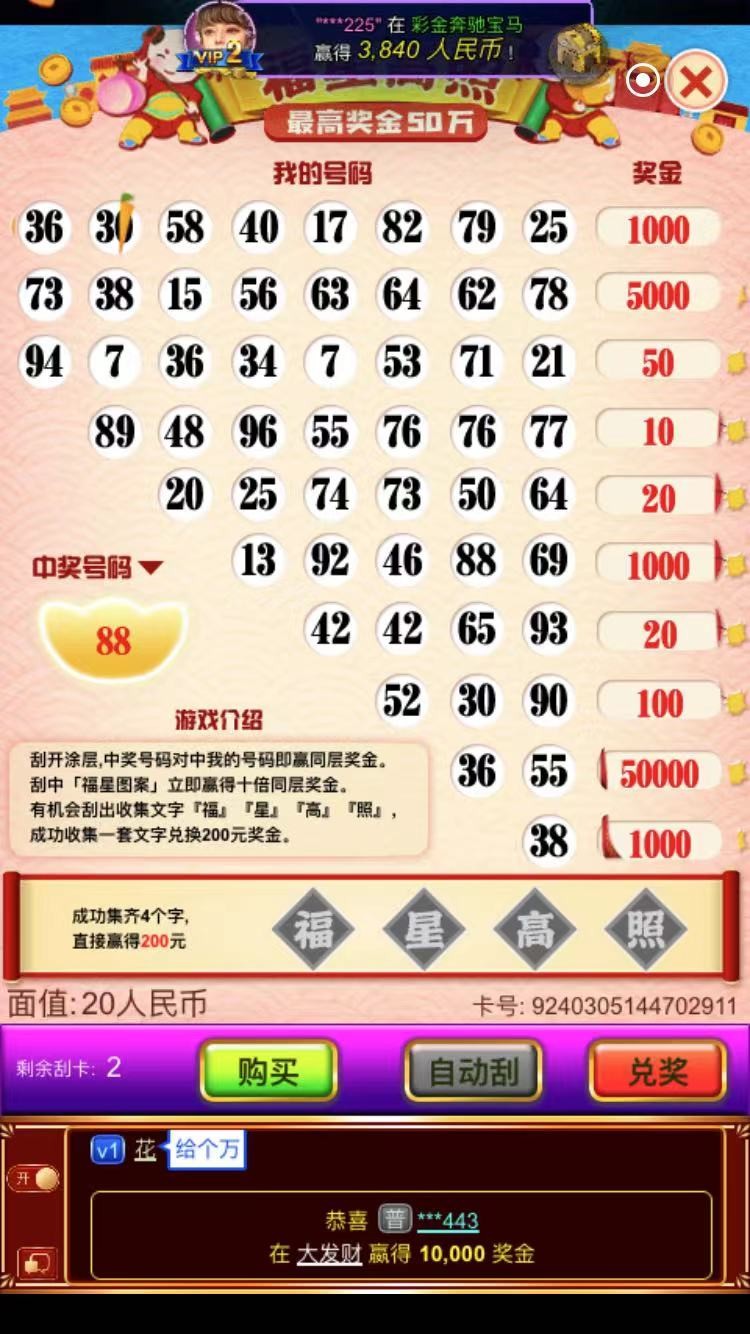 头一次刮了,刮了个1000,不知道黄播给不给出