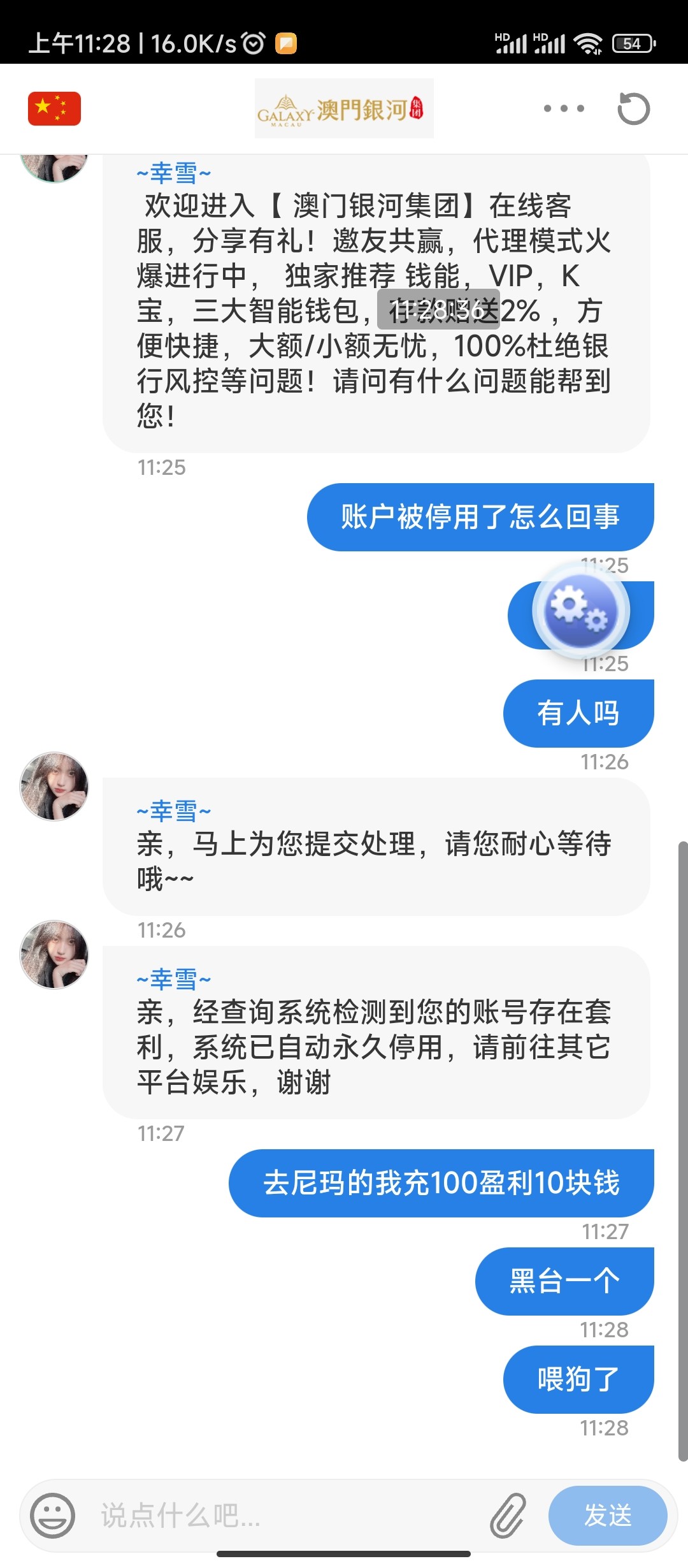 日你妈的充100领了个首冲,打了2倍水,盈利了10块钱不想打了,提现就封号,怪我没有看完跟帖,