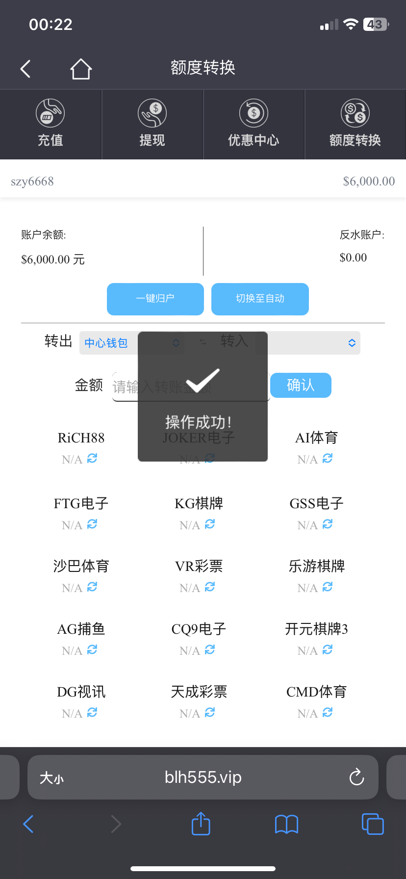充值100打首存,打上1500,不给提,让我打7500流水,后面打上6000,号给我封了,玩不起,纯黑台