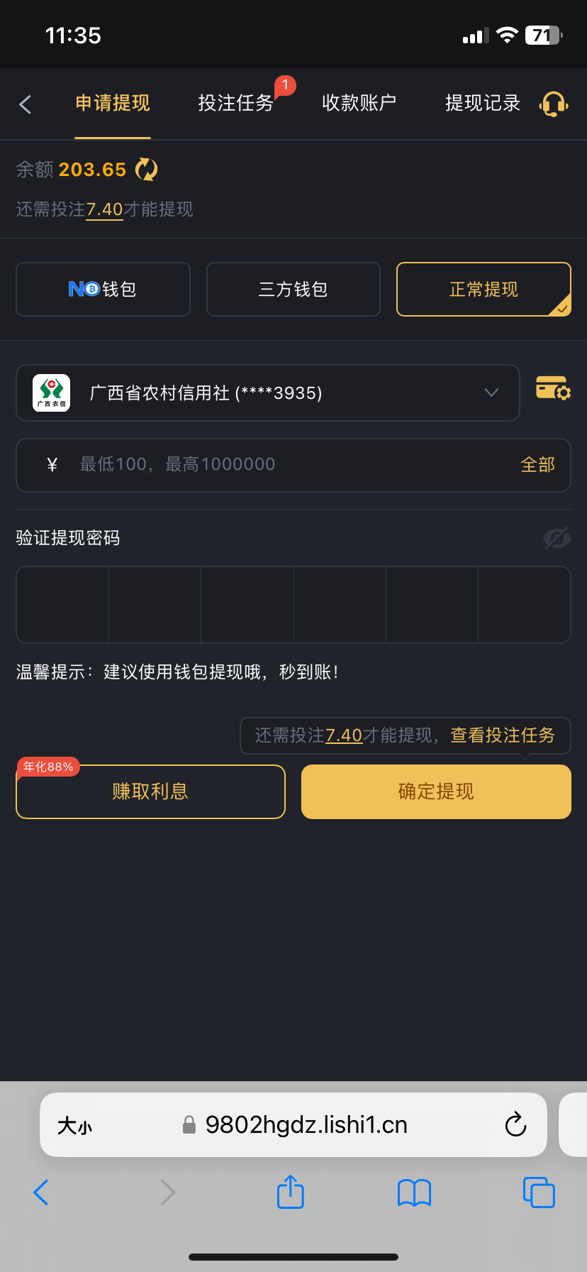 打出来了 不知道提现能不能到