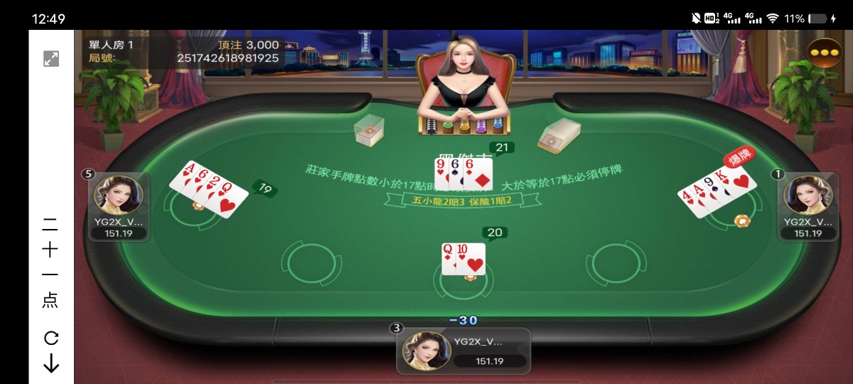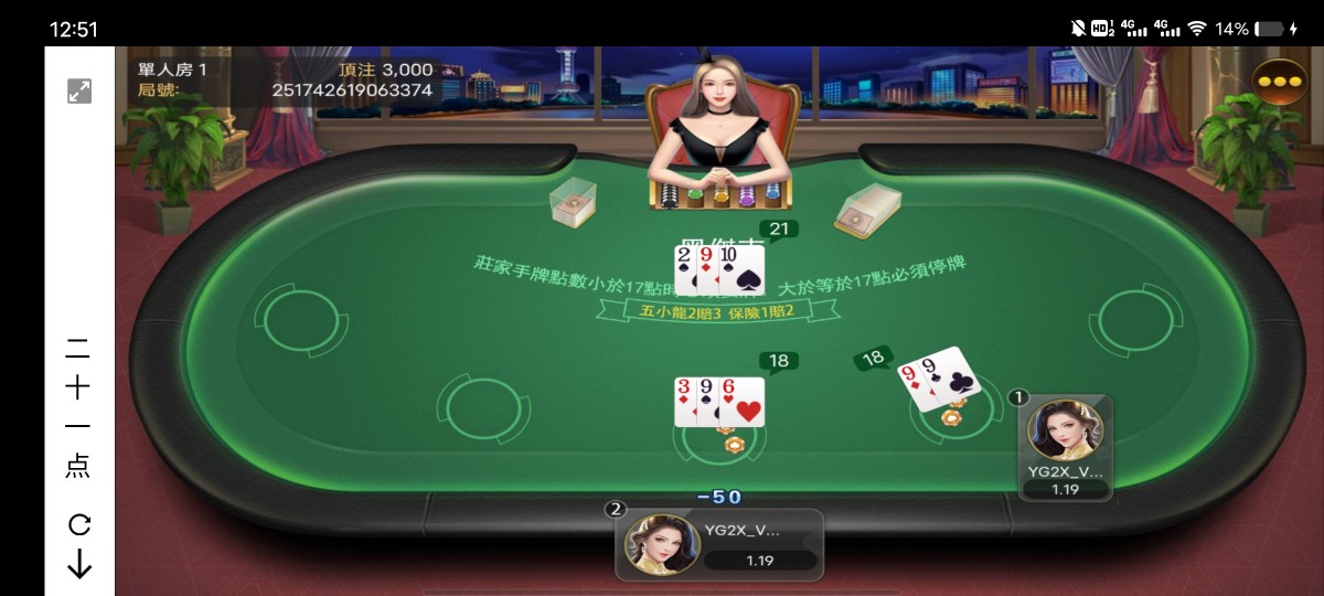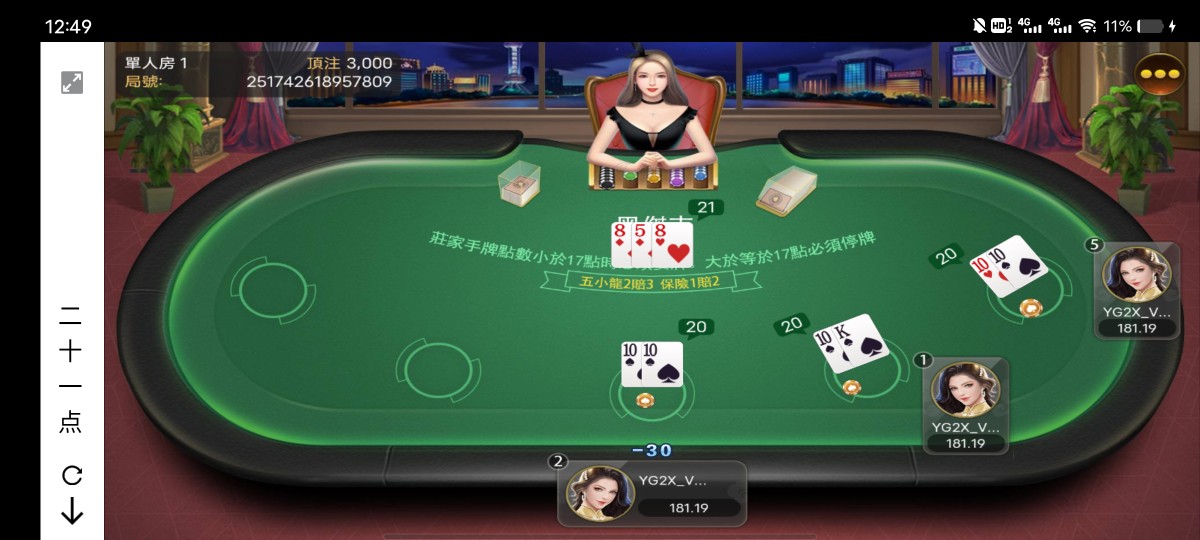 200元子2分钟没了,又充200,又没,咋玩咋输,我他妈20人家就21,我要就得炸,不要就得输,有时候狗币玩意我要也得输,同样的逼牌,庄家要过来就变21牛逼,卧槽他妈的盯着杀