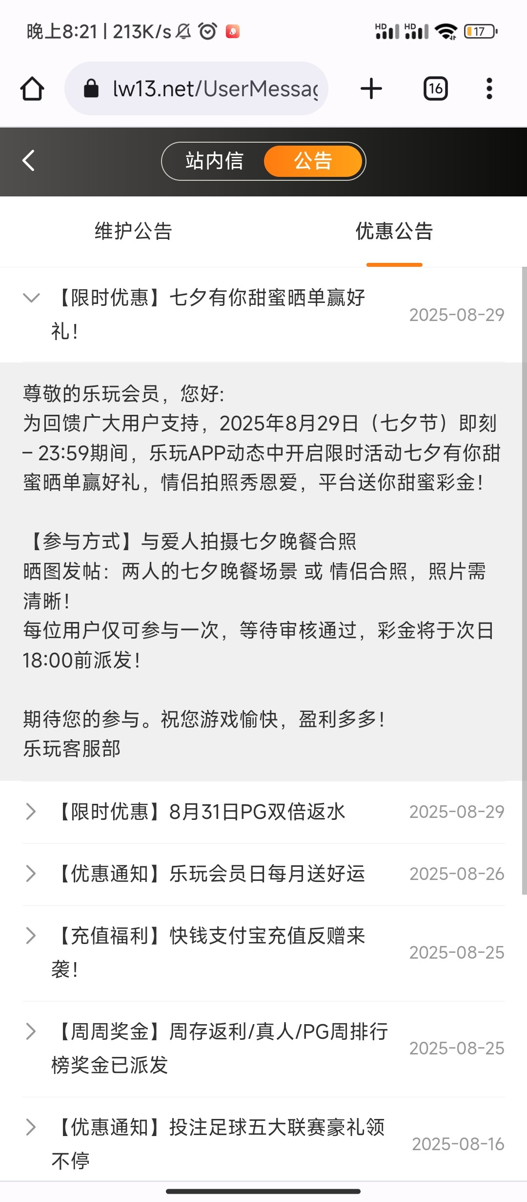 乐玩,和女友七夕合照彩金