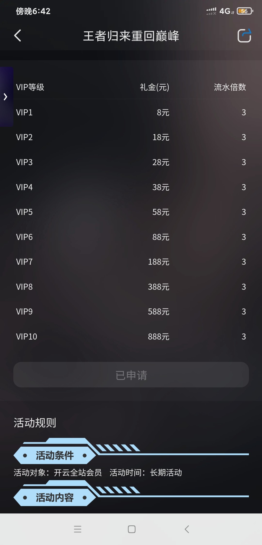 八月份ui更新,符合条件可以再领,至少要v1,15天没投注。