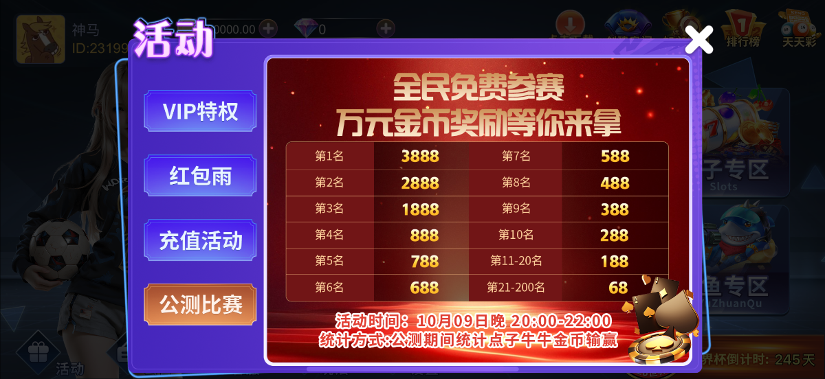 明天晚上8点打比赛,到10点,最高奖金3888
