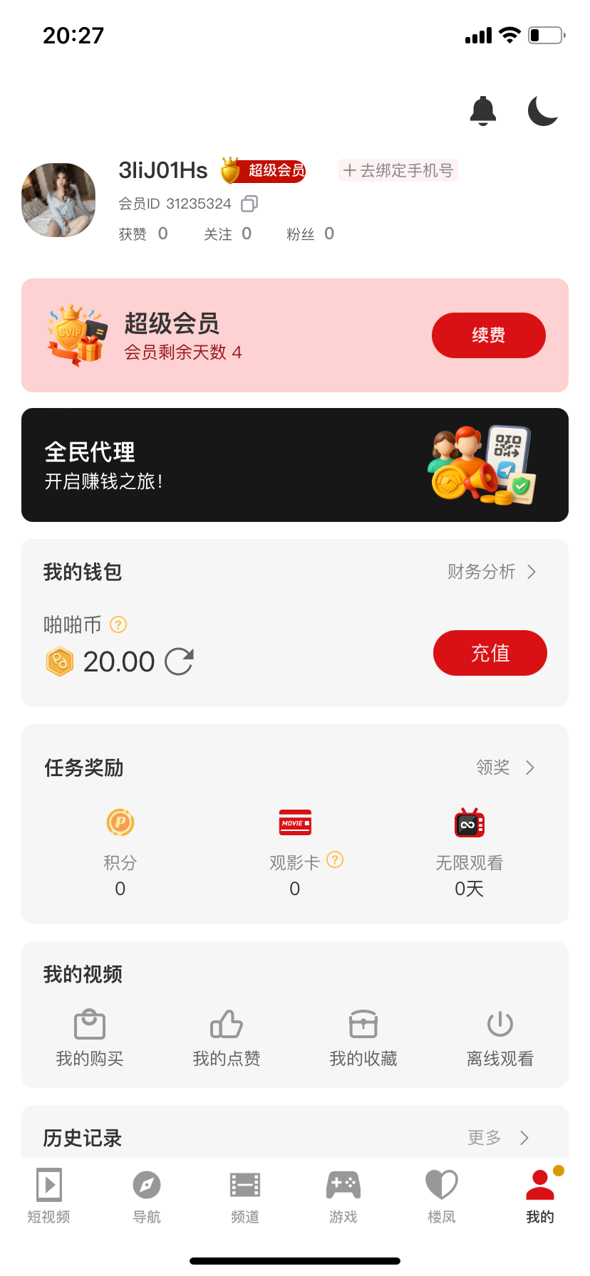 merlori 啥都不绑定,狗庄会给你出?人家当欢乐豆给你发的。你等一下卸载重装,每一次都有20。