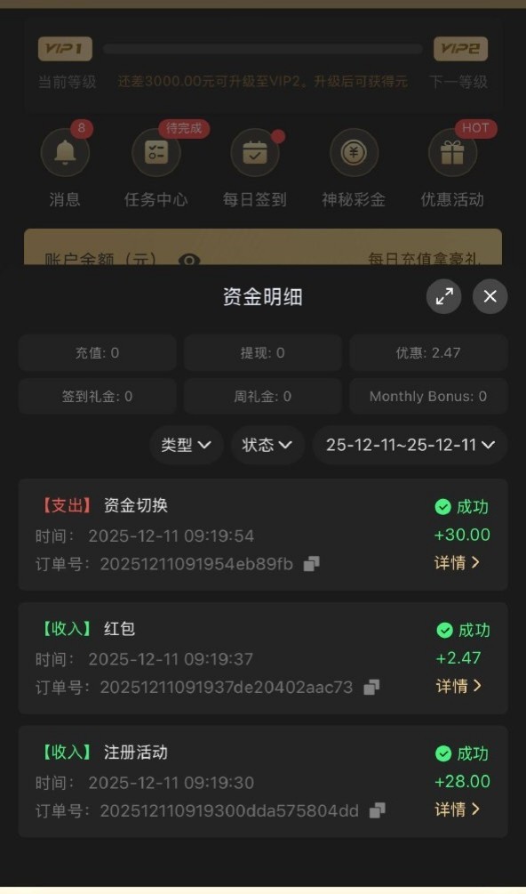 新用户注册去优惠大厅或者联系客服申请彩金,新用户基本秒到,具体自测吧
