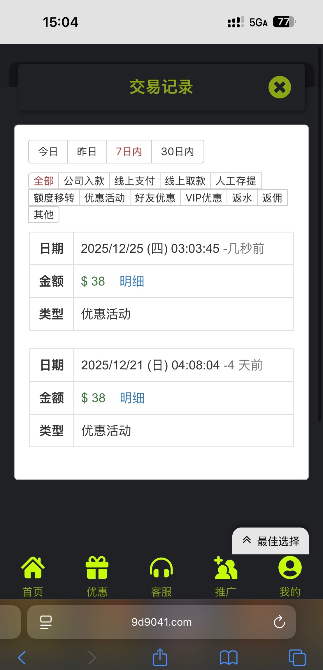 确实有,没接电话, ,登陆就给了,九鼎很久没给我送彩金了