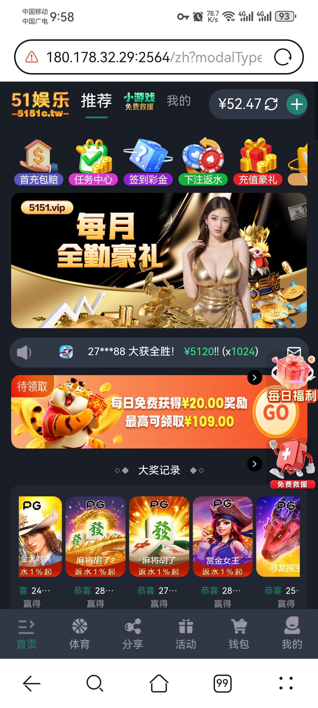 置顶评论 点:注册下载 就能打开网站,自己斟酌撸款白嫖,我打了20几个号,出了一个1200一个600,清除浏览器数据换ip重新撸,点签到宝箱没提示“ip已签到”就能继续干,还有出款不要出同名,找朋友拿支付下