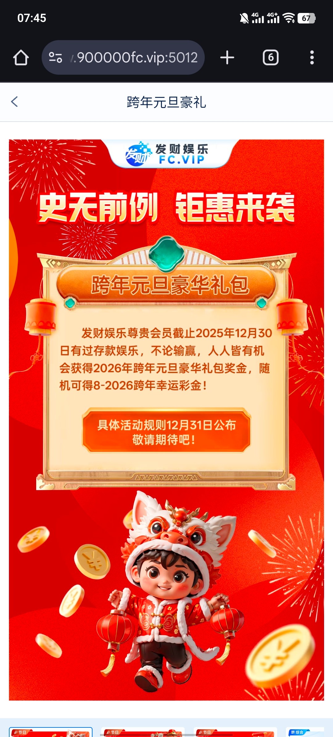 之前 很多人打过100+58的 一月一号记得在线登录领取 元旦回馈彩金 最低8元 祝愿大家接下来在新的一年里 心想事成 财源广进