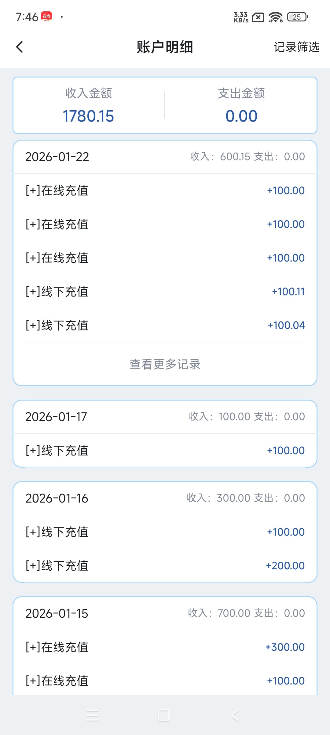 已经达标了,17号-21号都有充值