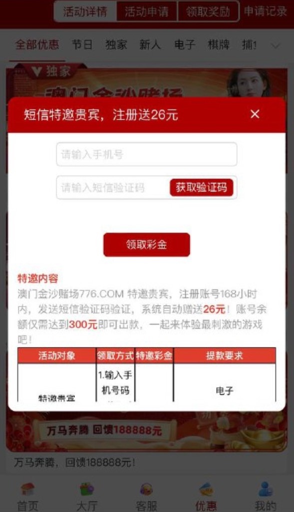 澳门金沙776 送26,注册在优惠里自助碰瓷特邀彩金网址 www.776.com 优惠:送26,注册在优惠里自助碰瓷特邀彩金彩金限制电子棋牌捕鱼。10倍流水可出款