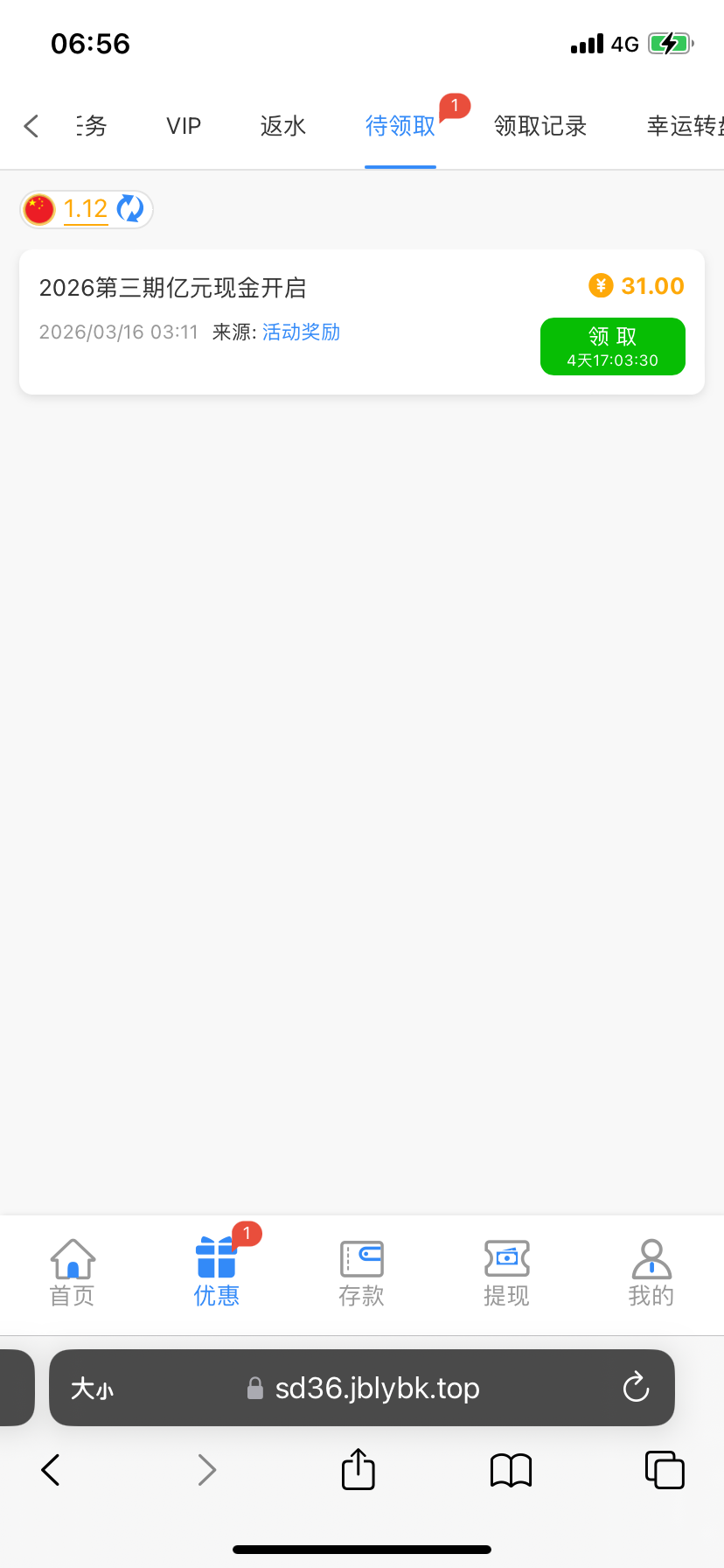 3月16之前注册的都有31, 充值一次才能领取,微信或支付宝可以充1块, 531.com