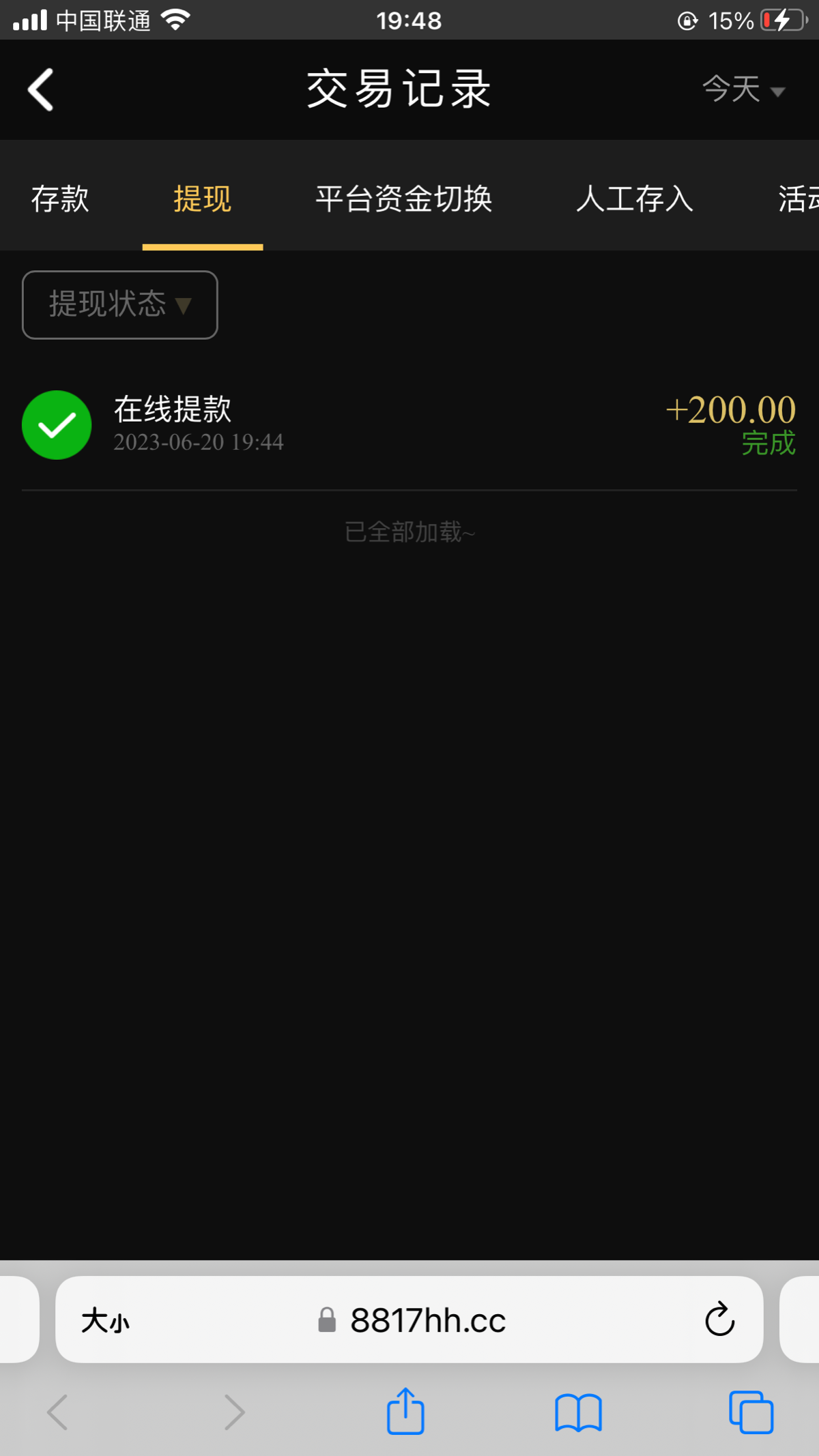小赤佬 送了58打到200,显示出款成功,但是没到账