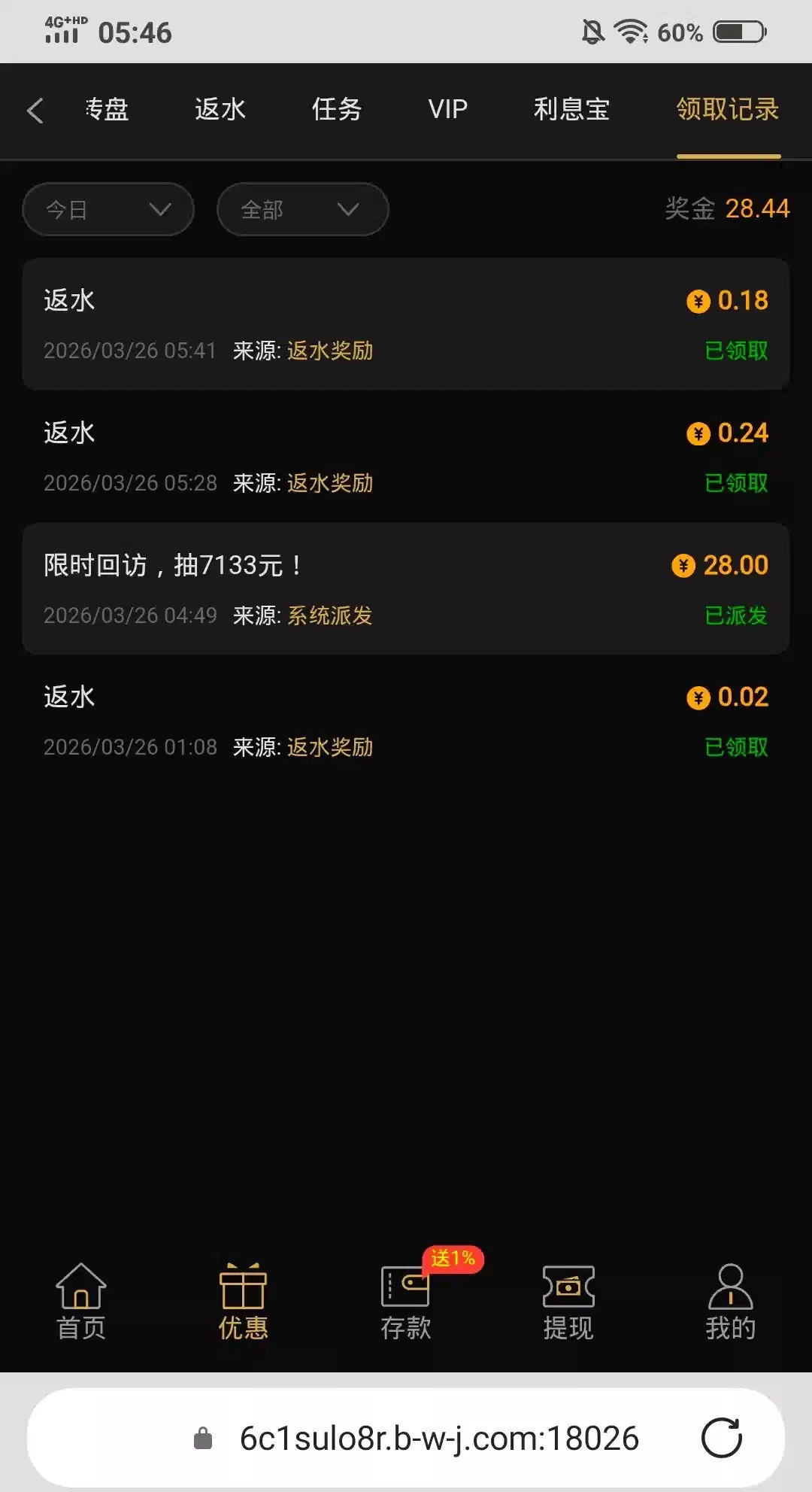 有奖反馈自己去反馈,本来不觉得能给彩金,没想到给了,链接7133.com