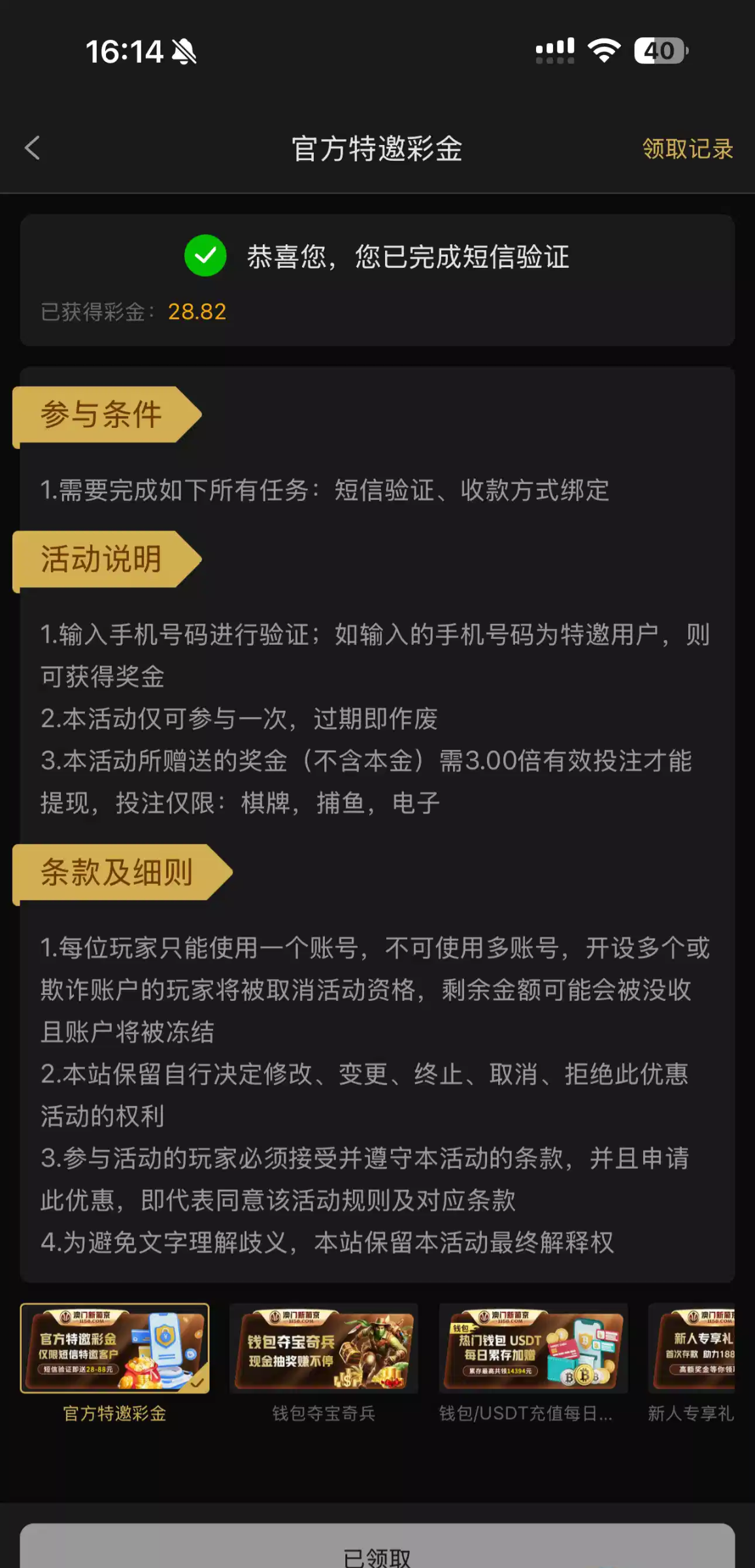 短信自助领取