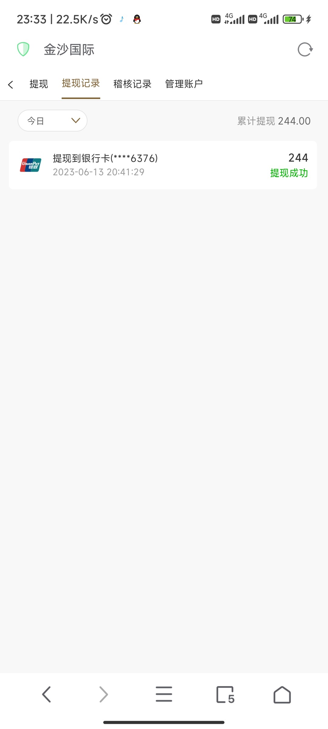 到账了,55打到244