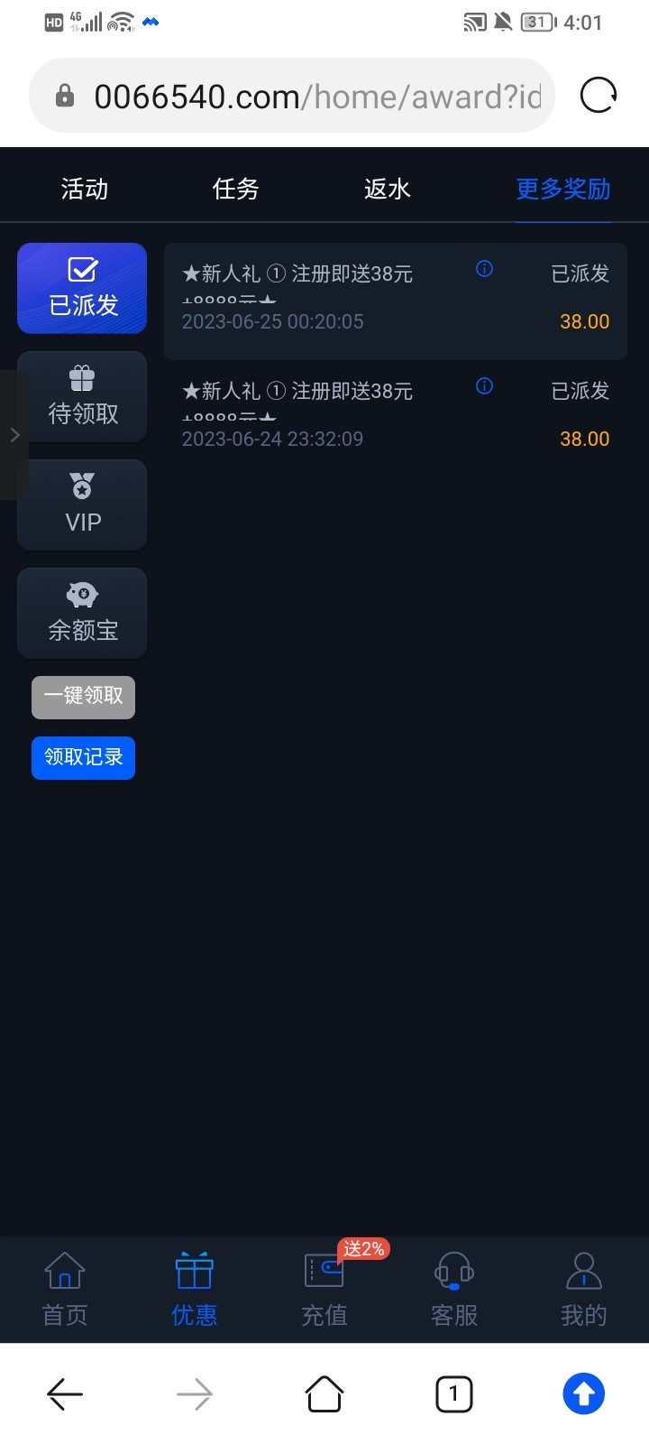 重新注册也送的我的送了两个38b水没有